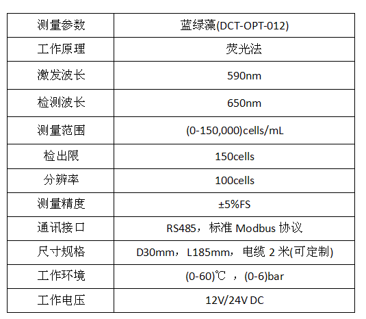 DCT-OPT-012是一款采用RS485通訊接口和標(biāo)準(zhǔn)Modbus協(xié)議,自帶清洗刷的藍(lán)綠藻智能電極。基于相干熒光檢測技術(shù),具有選擇性好,抗干擾強(qiáng)、靈敏度高、無需預(yù)處理、測量快速等優(yōu)點(diǎn)。隨機(jī)附送專業(yè)操作軟件,具有校準(zhǔn)、記錄、分析、診斷等功能。